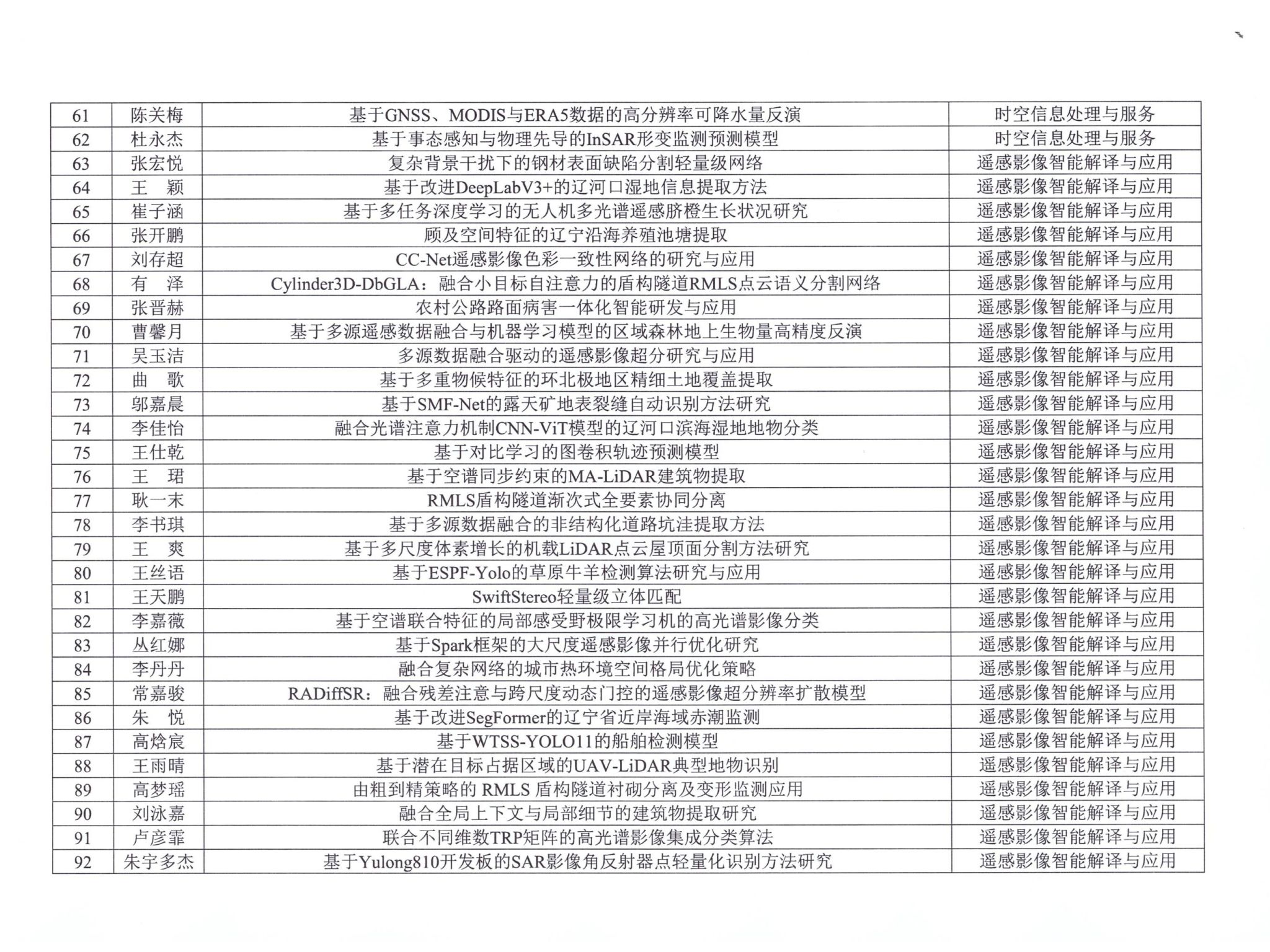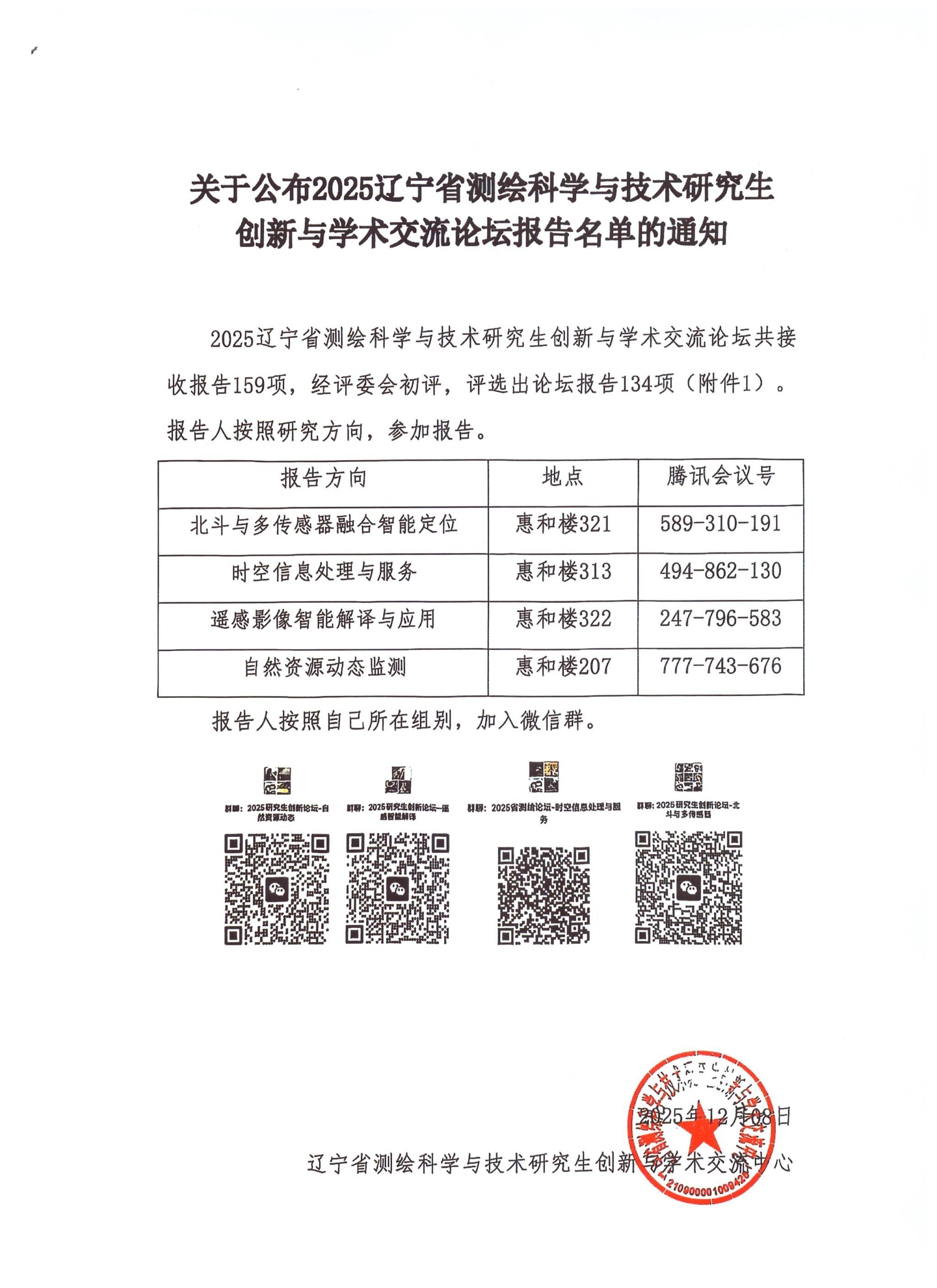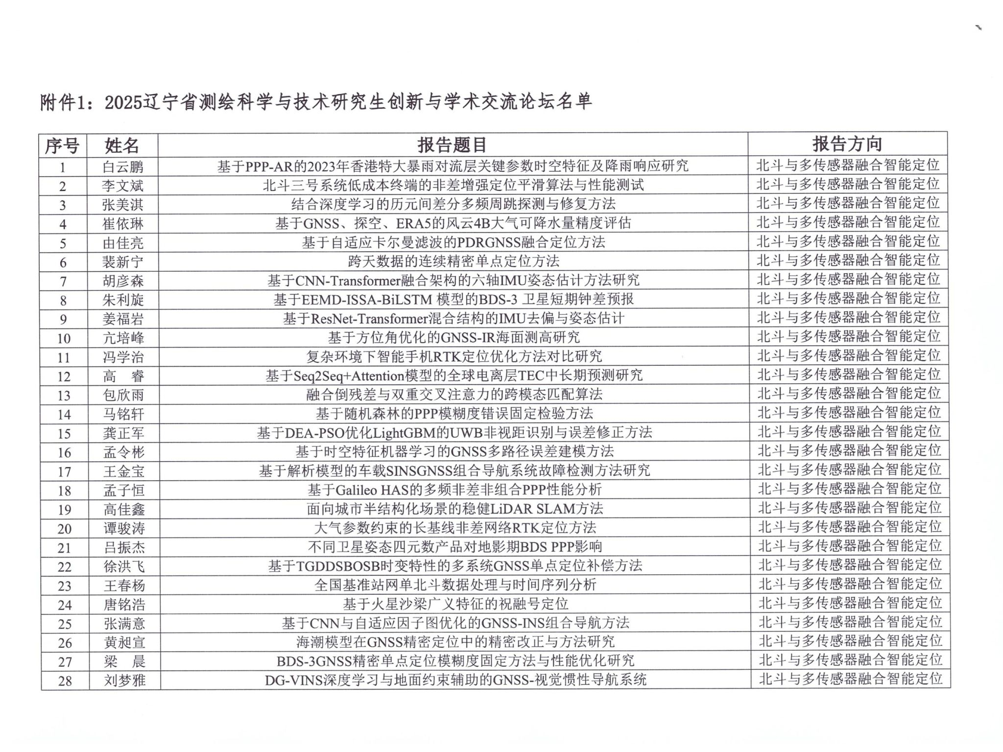 关于公布2025辽宁省测绘科学与技术研究生创新与学术交流论坛报告名单的通知