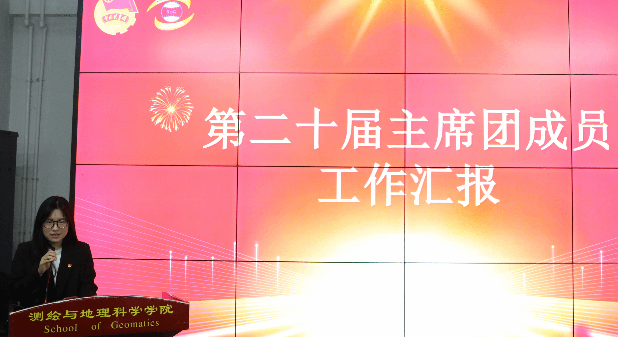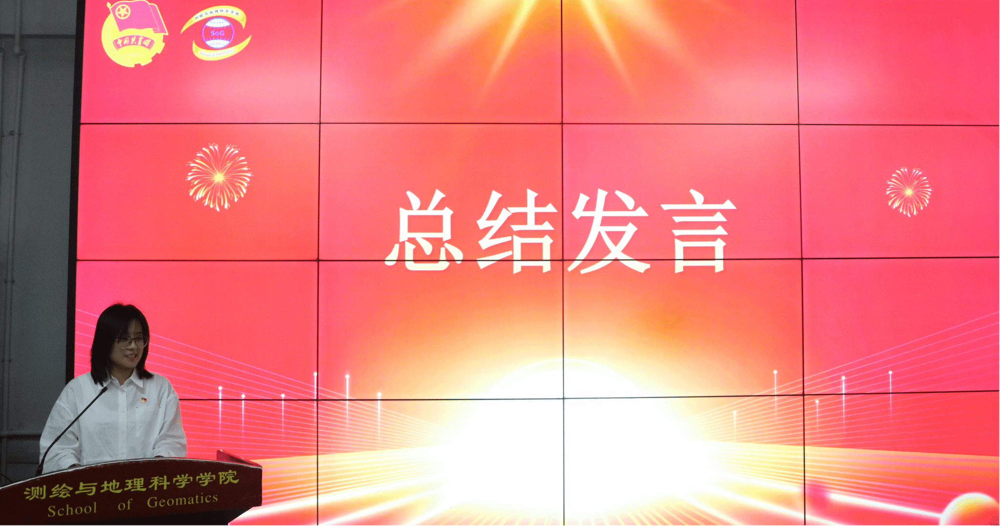 最后,程千老师作总结发言。她首先对上一届主席团及各学生组织成员的辛勤付出与突出贡献表示衷心感谢,肯定了过去一年学生工作取得的成效;随后对新一届主席团成员提出殷切期望:立足测绘学科特色,既要传承上一届的优良工作传统,更要主动创新工作思路与方法;要不断提升专业素养与组织协调能力,在学术活动策划、实践项目推进、师生沟通联动等工作中精准发力,切实发挥好连接学院与学生的桥梁纽带作用,努力在学院高质量发展和中国式现代化建设的进程中展现青年担当。