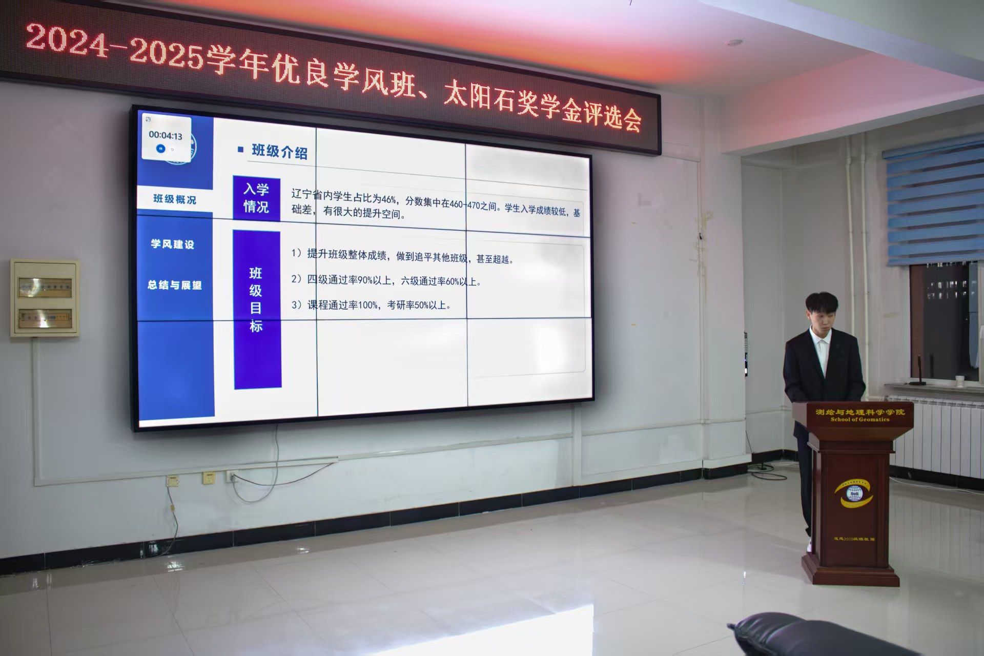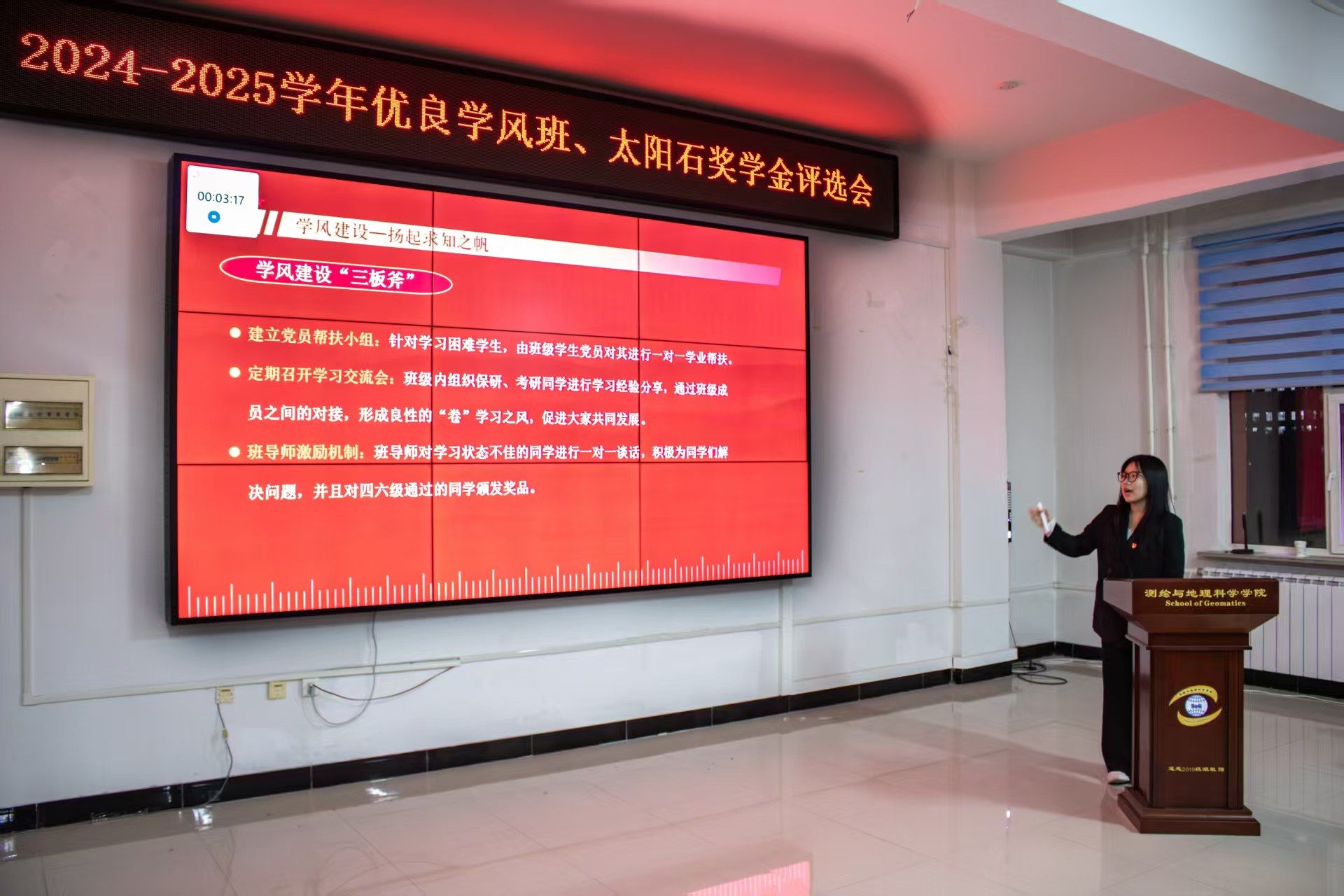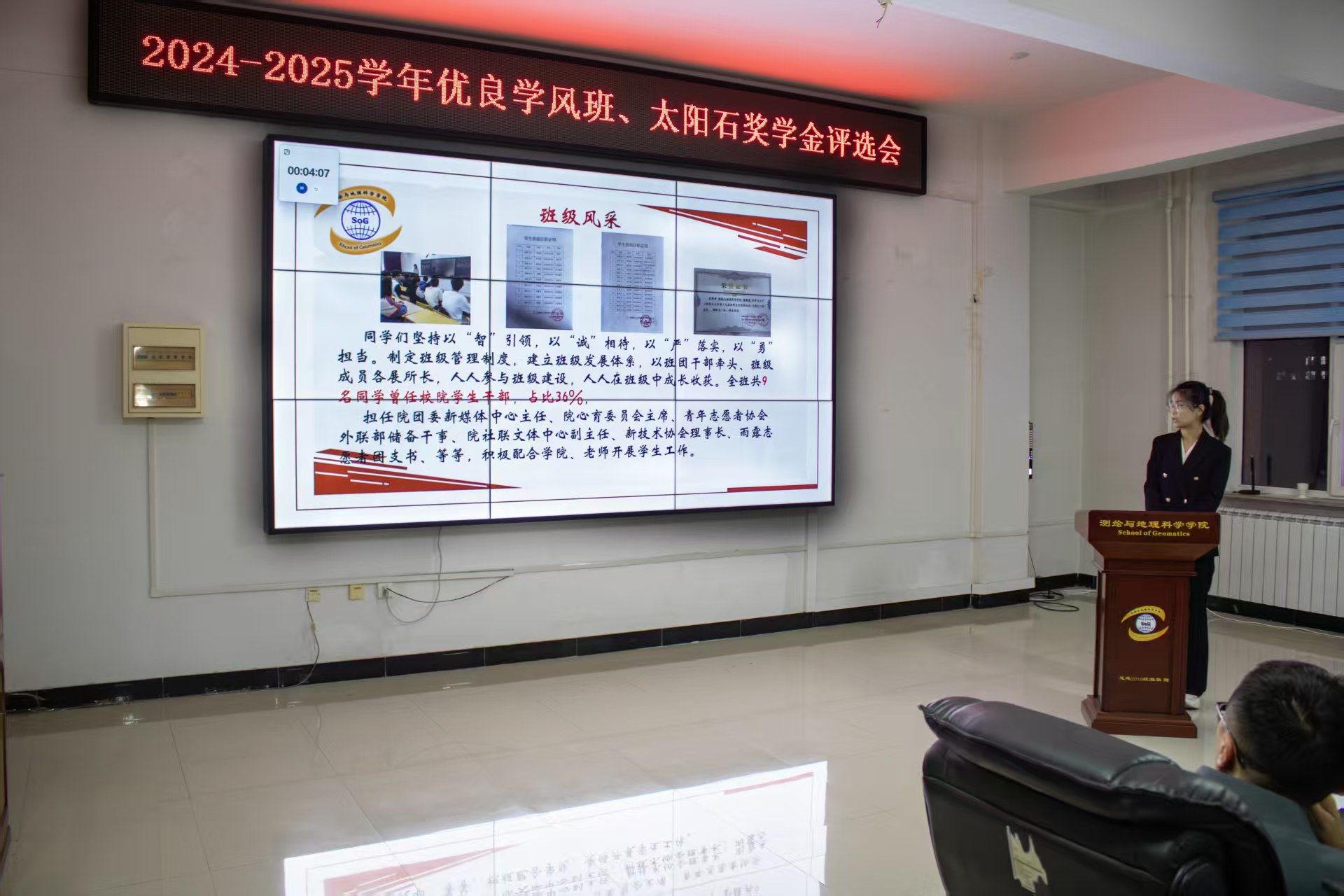 随后进行了“优良学风班”的评选。4个进入评选环节的班级通过PPT展示,从班级学习氛围营造、学业帮辅措施、学业成绩提升、班级文化建设、社会实践开展等多个维度,全方位展现了各自班级在学风建设方面的显著成果和独特经验。各班代表自信从容、条理清晰的阐述,充分彰显了当代大学生班级的凝聚力和向心力。