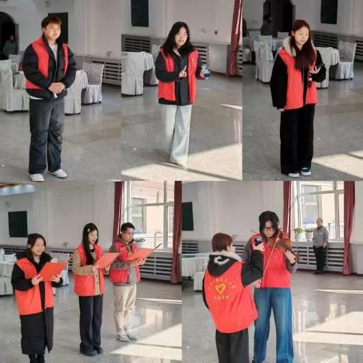 慰问活动在庄重而温馨的氛围中拉开帷幕。志愿者们精心准备的文艺节目精彩纷呈,深情讴歌了英雄辈出的光辉岁月。宋勃锦同学激昂高歌《志愿军战歌》,雄壮的旋律瞬间将在场所有人的思绪带回到那段烽火连天的峥嵘岁月;刘嘉琪同学深情演唱的《没有共产党就没有新中国》,以真挚的情感唱出了人民的心声;高鸣欧同学献上的京剧《穆桂英挂帅》选段,唱腔高亢嘹亮,展现了巾帼英雄的豪迈气概,赢得现场阵阵掌声;孙戈傲同学的小提琴独奏《歌唱祖国》,旋律优美动人,如诗如画地表达了对祖国的深情祝福;郑婉君、蔡椿晖、闵雯三位同学共同演绎的诗朗诵《两弹一星精神》,声情并茂,铿锵有力,再现了老一辈科技工作者自力更生、奋发图强的崇高精神。演出结束后,志愿者们围坐在老兵身旁,悉心聆听他们讲述当年的战斗故事和革命经历,感悟他们身上所体现的忠诚、担当与奉献精神。随后,志愿者们发扬不怕苦、不怕累的作风,认真细致地打扫食堂卫生,以实际行动改善老兵的居住环境,传递着浓浓的敬老情与关爱意。