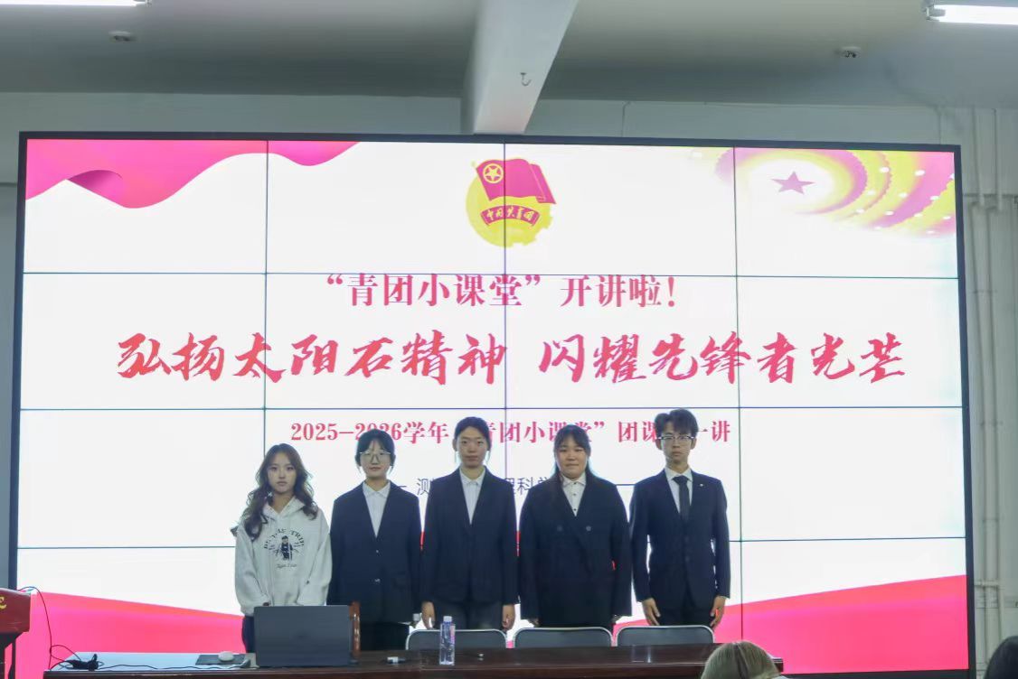 为引导青年学生领悟“太阳石精神”的时代内涵,筑牢新时代辽工大学子理想信念根基,充分发挥共青团的思想政治引领作用,2025年10月28日,我院“青团小课堂”团课第一讲于惠和楼207会议室正式开课。本次团课由学校太阳石精神宣讲团讲授,学院入团积极分子及部分学生骨干参加。