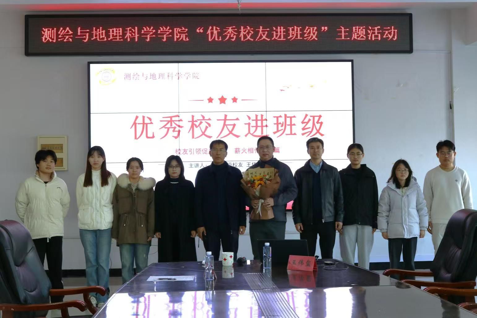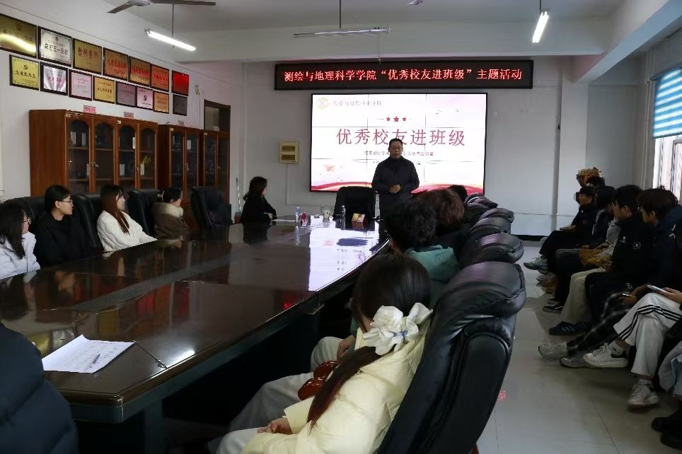 为充分发挥优秀校友的示范引领作用,搭建校友与在校生之间的沟通桥梁,帮助学生明确发展方向、科学规划人生,2025年11月15日,测绘与地理科学学院于惠和楼322会议室举办“校友引领促成长,薪火相传绘新篇”优秀校友进班级主题活动会议。本次活动特邀97级优秀校友、深圳大学教授、深圳市地方级高层次领军人才王伟玺教授担任主讲。学院党委书记王崇倡、党委副书记兼副院长范强以及2024级遥感科学与技术专业学生代表共同参与,活动由学院团委书记程千主持。