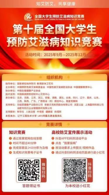 服务队承办了由教育部体卫艺司、国家疾控局传防司指导,国家一级基金会与协会主办的2025年第十届全国大学生预防艾滋病知识竞赛。活动覆盖全院1000余名学生,以赛促学、人人参与,有效传播了艾滋病相关科学知识,强化了学生的自我保护意识与能力,为构建健康校园筑牢知识防线。