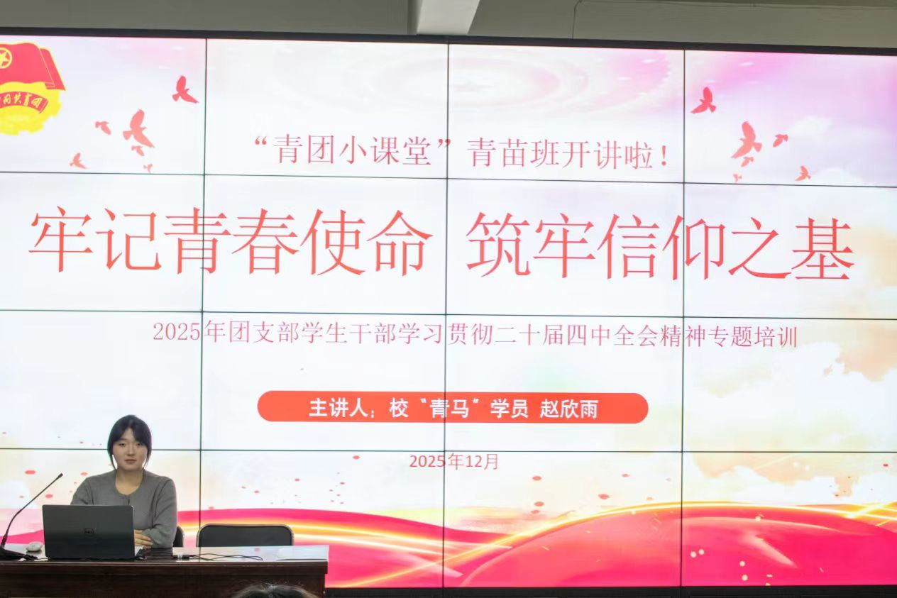 为深入学习贯彻党的二十届四中全会精神,引导广大青年学子筑牢信仰之基、自觉担当青春使命,2025年12月6日,测绘与地理科学学院举办2025年团支部学生干部学习贯彻党的二十届四中全会精神专题培训。本次培训特邀校级“青马工程”学员赵欣雨担任主讲人,学院全体团学骨干参加。