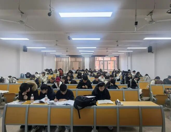 志愿服务覆盖考生从入场至离场的全流程。志愿者们分工明确、配合紧密,在考场外设置专人负责的物品寄存点,实行登记核对与定点看管,确保物品安全无误;考试期间全程值守,及时应对各类突发状况;考试结束后协助快速整理、归还物品,实现流程闭环,极大提升了考生赴考效率。服务过程中,志愿者们始终面带微笑,耐心解答各类咨询,并以鼓励的话语舒缓考生的焦虑情绪。教室黑板上精心绘制的祝福标语与温馨提示,更为严肃的考场注入一抹暖意,帮助考生提振信心、沉着应考。这些务实而温馨的举措,成为考研学子奔赴考场途中坚实而温暖的“后盾”。