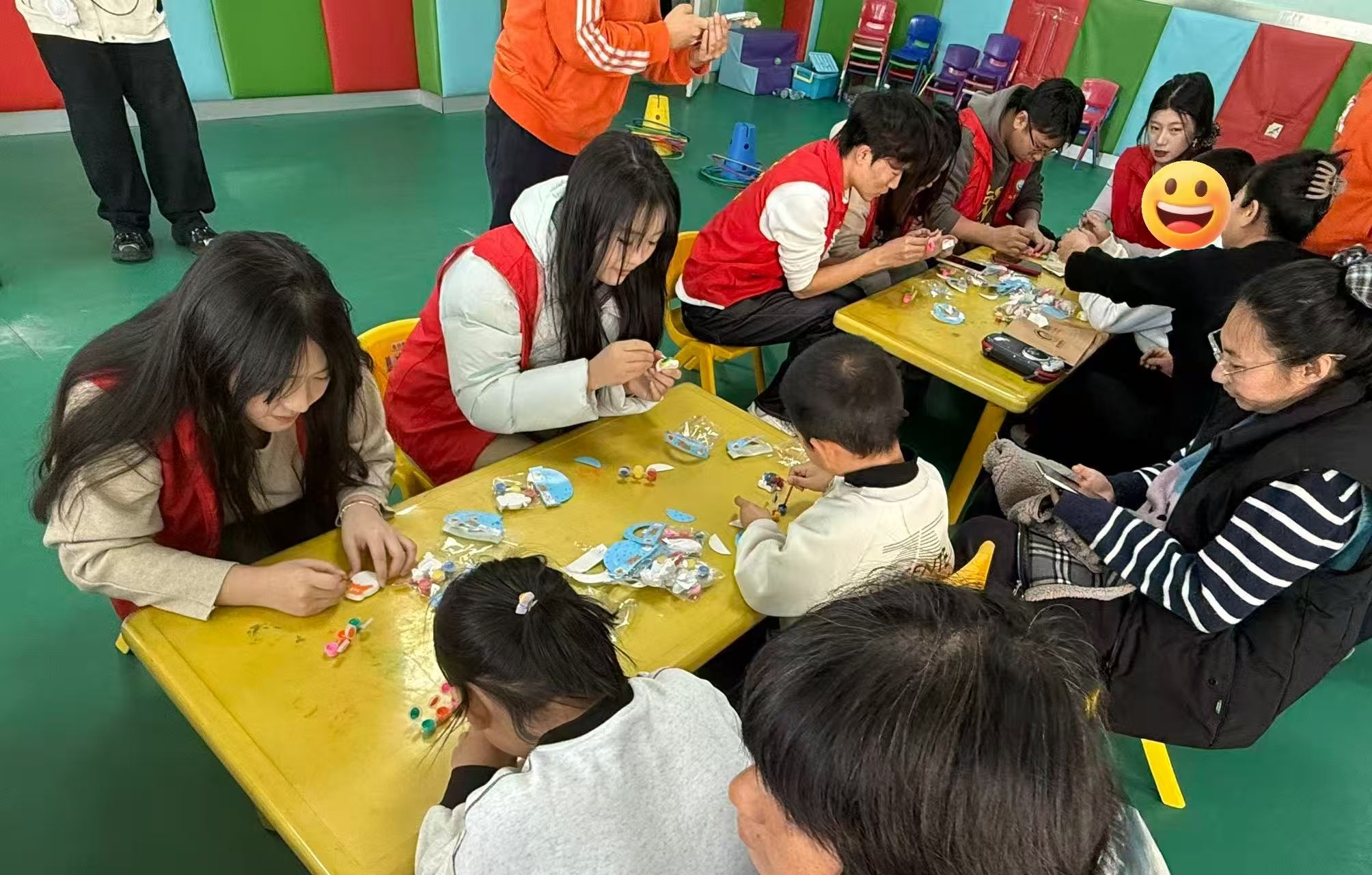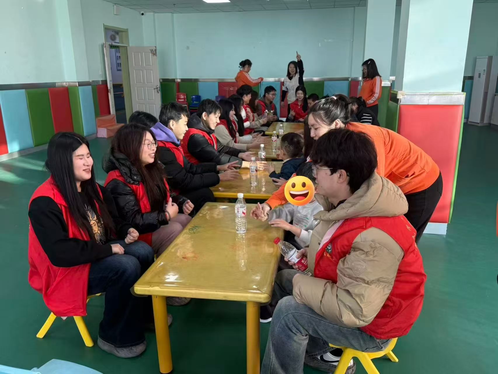 活动伊始,志愿者们在园方老师的引导下,深入了解特殊儿童的日常生活、心理特点与教育方式,建立起对服务对象的初步认知与尊重。在接下来的互动环节中,志愿者们以“陪伴”为核心,设计了“抢瓶子”“接力套圈”等趣味游戏,在轻松欢快的氛围中与孩子们拉近距离、增进默契。紧接着的石膏涂鸦环节成为活动的一大亮点——志愿者们俯身陪伴,耐心引导孩子们调色、勾勒、上色,鼓励他们发挥想象、自由表达。一只只小手在画笔间游走,一个个稚嫩的作品在欢笑中诞生。在这份双向陪伴中,孩子们收获了快乐与认同,志愿者们则感受到心灵深处的温暖与治愈,真正体会到志愿服务的深层意义:不是居高临下的帮助,而是平等真诚的陪伴。