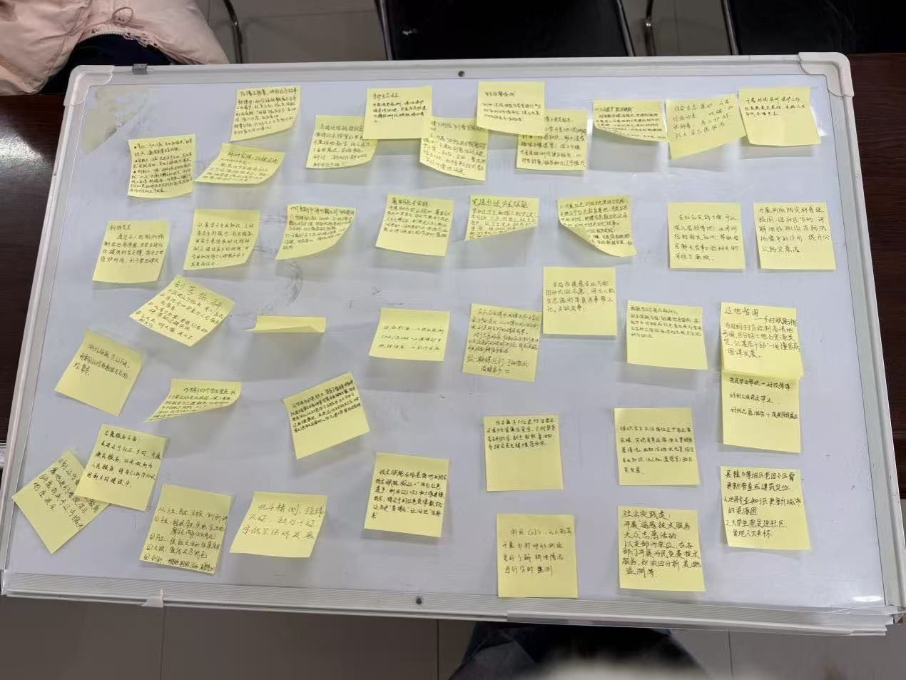 活动的高潮环节是“振兴承诺”。余岚老师为每位党员发放便利贴,请大家写下“本学期,我为辽宁振兴做的一件小事”。承诺内容具体务实:有的计划“深度了解一家辽宁本土测绘企业”,有的准备“参加一次振兴主题社会实践”,还有的表示将“把课程作业与辽宁生态修复案例相结合”。一张张写满承诺的便利贴,最终汇聚成支部的“振兴承诺墙”,成为党员们自我鞭策、互相监督的行动指南。