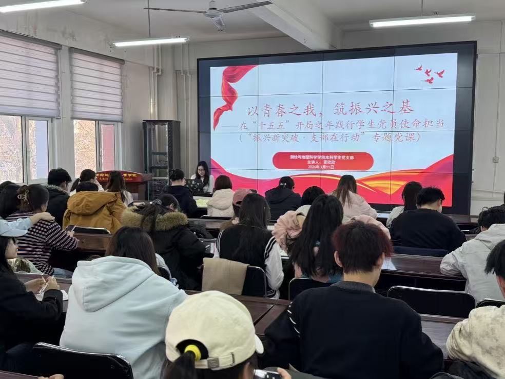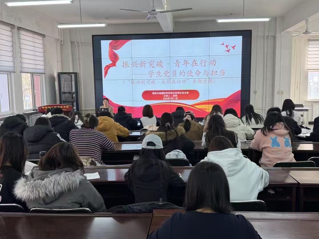 为响应学校“振兴新突破·支部在行动”号召,引导青年党员将个人成长融入辽宁发展大局,3月11日,测绘与地理科学学院本科学生党支部在惠和楼207教室举办了一场别开生面的专题党课。活动由支部书记余岚老师主讲,全体学生党员及预备党员参与,通过深入研讨与互动实践,共话青年使命。