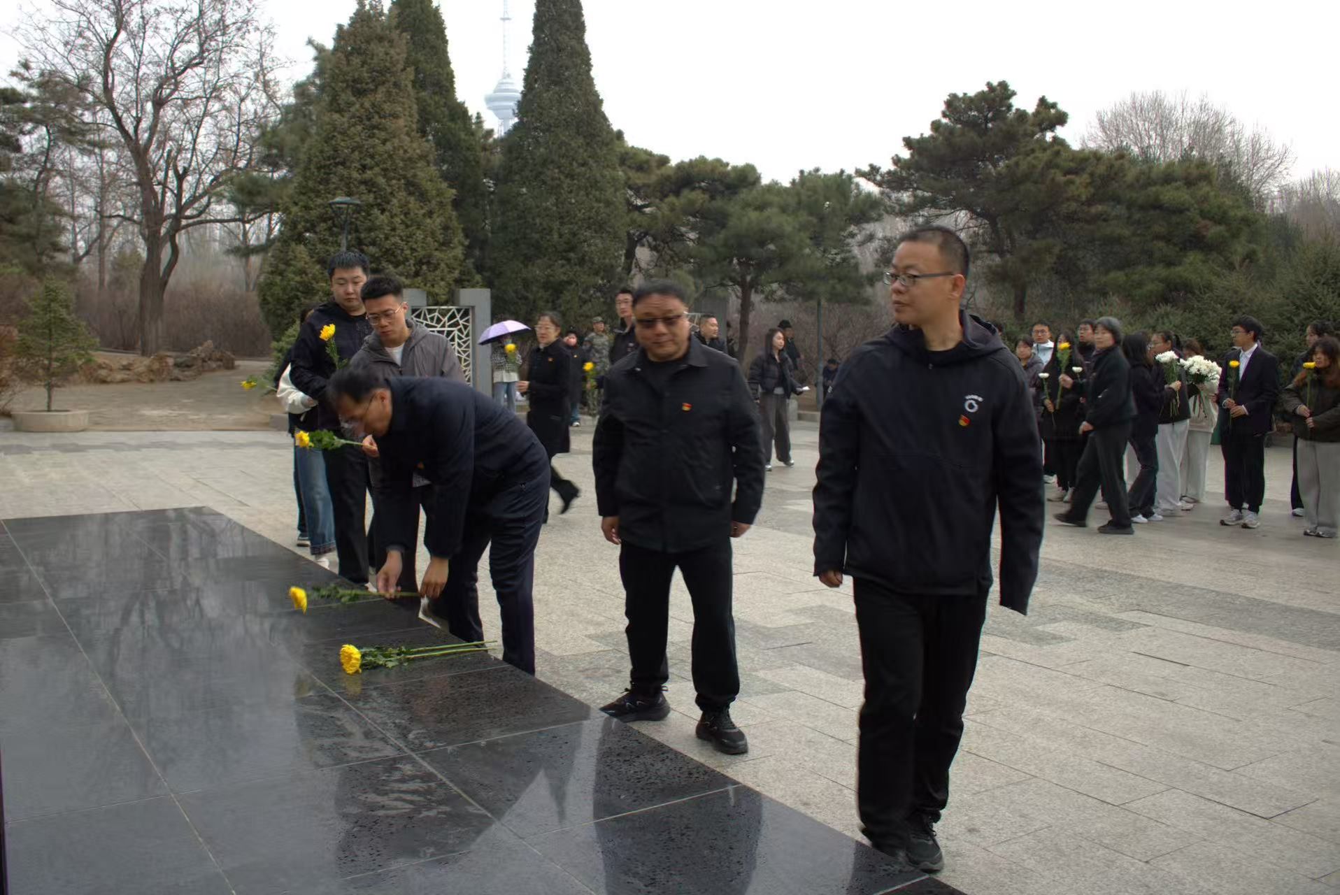 全体党员依次缓步绕行纪念碑一周,向烈士敬献鲜花,表达对革命先烈的崇高敬意和无限追思。朵朵鲜花寄托着青年党员对先烈的深切缅怀,也承载着他们砥砺前行的坚定信念。
